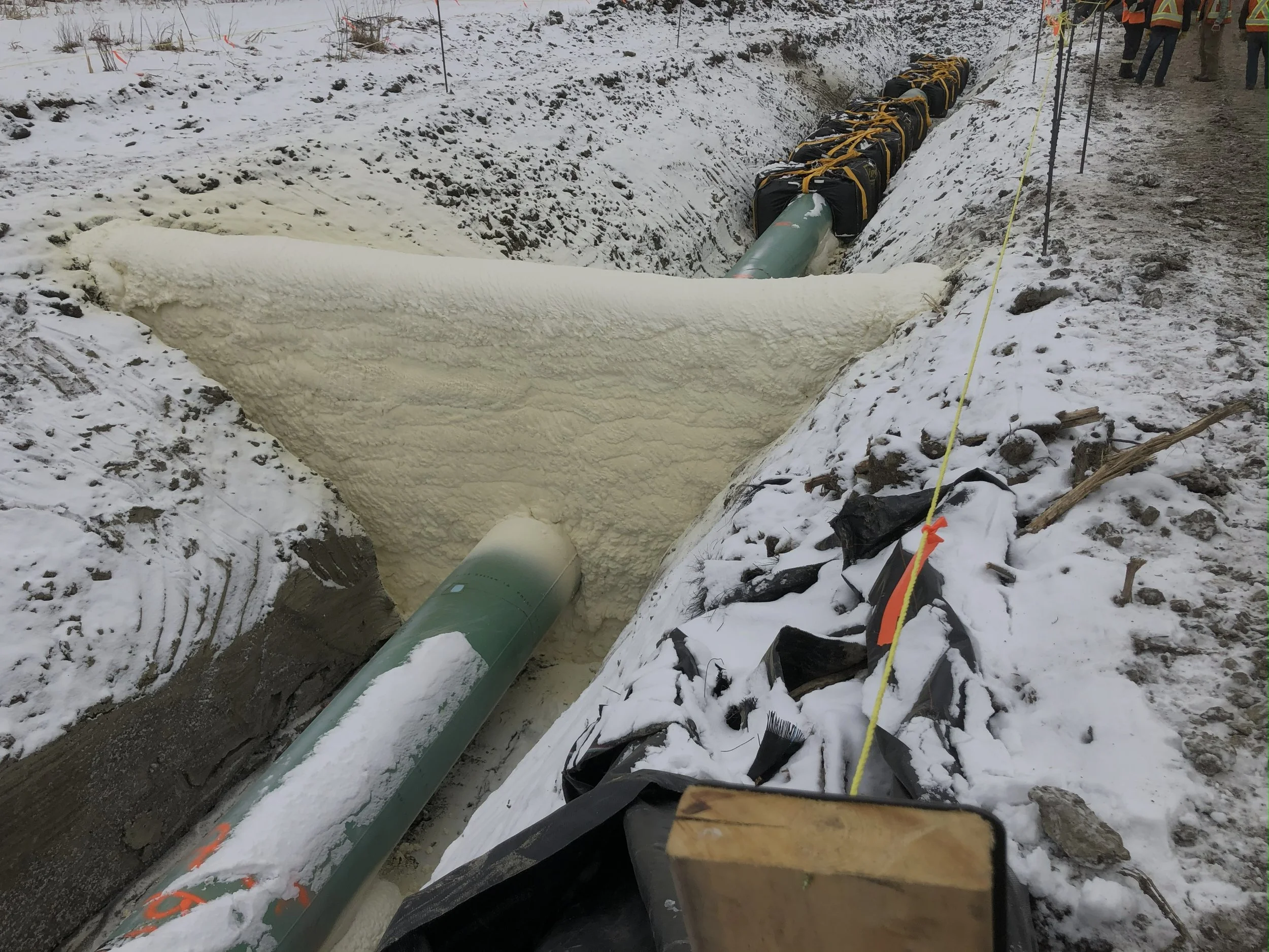 For pipelines installed in rocky conditions, polyurethane foam provides superior protection by conforming to the contours of the pipe, effectively acting as a durable, protective “skin.”